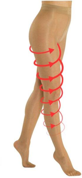 A harisnyanadrág kompressziós hatása lentről, a bokától felfelé fokozatosan csökken. A kompressziós harisnya hatása: